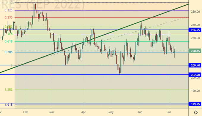 Growth scenario: consider the October futures, the expiration date is September 30th. We see a nervous bounce up. Until we buy. We are counting on another wave of decline.