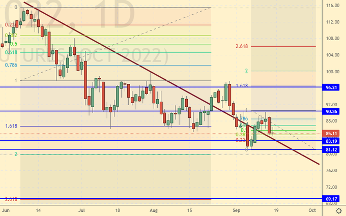 Fall scenario: shorting from 95.00 continues to be an interesting idea. If there is no growth, then those who wish can sell after falling below 80.00, but this will not be the best deal.
