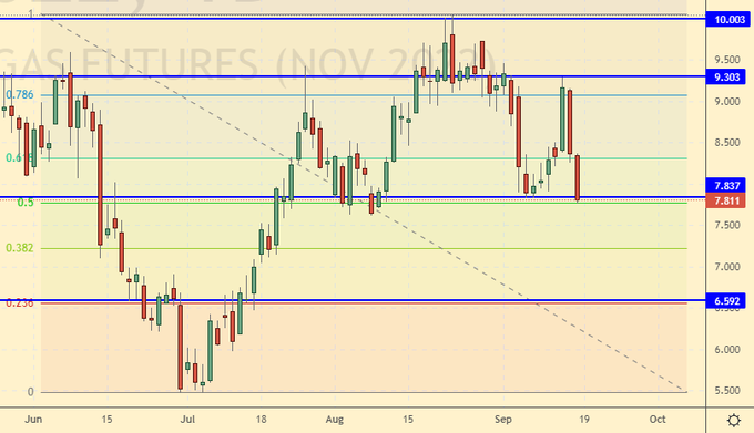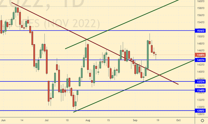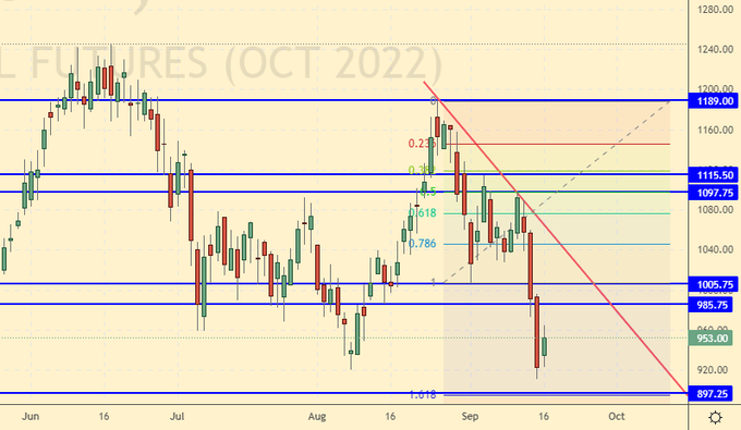 Growth scenario: we are considering the November futures, the expiration date is November 14th. The market is trying to convince us that it will continue to draw a growing channel. Believe him, we will keep the longs.