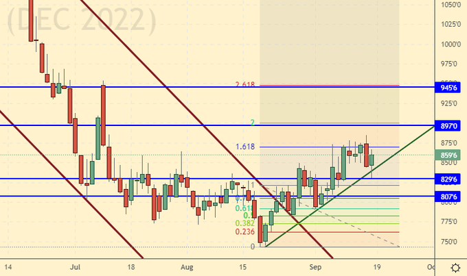 Purchase: no. Who is in position from 860.0 and 840.0, move the stop to 818.0. Target: 945.0 cents per bushel.