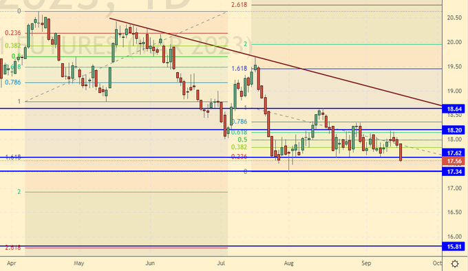 Growth scenario: we consider the March futures, the expiration date is February 28. Despite the move below 17.60, we will buy again. Let’s place a stop order close.