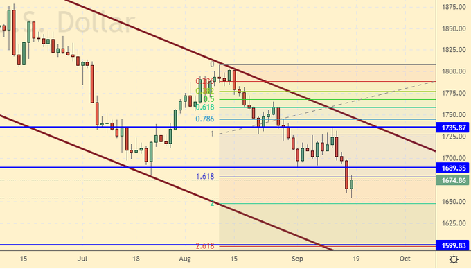Growth scenario: the dollar is strong. We don’t buy. Fall scenario: continue to hold shorts. Our goal is level 1600.