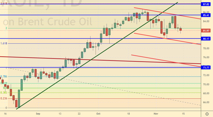 Growth scenario: January futures, the expiration date is December 20. We could not pass above 83.80. We will buy either after growth above 84.00, or when approaching 70.00.