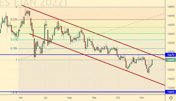 Growth scenario: December futures, expiration date November 26. The sellers made a little mischief. Forgive them for this. We buy again. Falling scenario: do not sell. Winter is ahead. Europe continues fighting with Gazprom, it is worse for it.