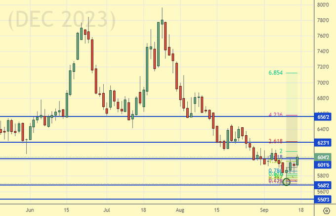 Growth scenario: we are considering December futures, expiration date is December 14. We entered long from 570.0. Now we hold longs in the hope that we have hit the minimum of the season. We do not exclude a move to 550.0. From this level you will need to buy even more aggressively.