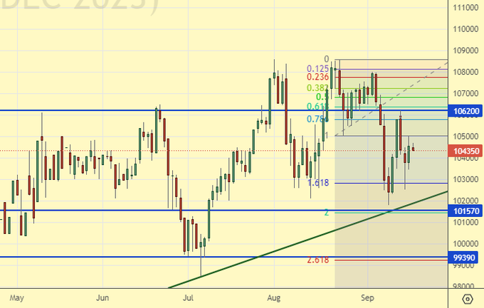 Fall scenario: we will keep shorts from 105800 and 105000. Note that a move below 99000 can cause a nervous breakdown in bulls with a fast move at 90000.