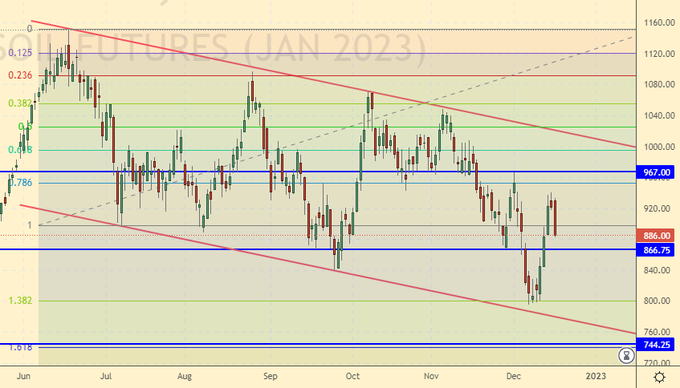 Growth scenario: consider the December futures, the expiration date is December 30th. From current levels, you can buy, provided that the stop order is close. The chances of a move above 90.00 are not great, but they are there.