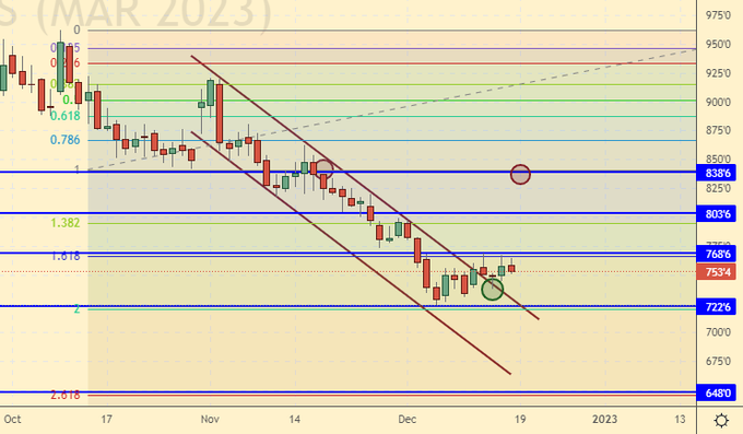 Growth scenario: we consider the March futures, the expiration date is February 28. Prices are at their lowest levels for this year. Purchases from current levels are possible.