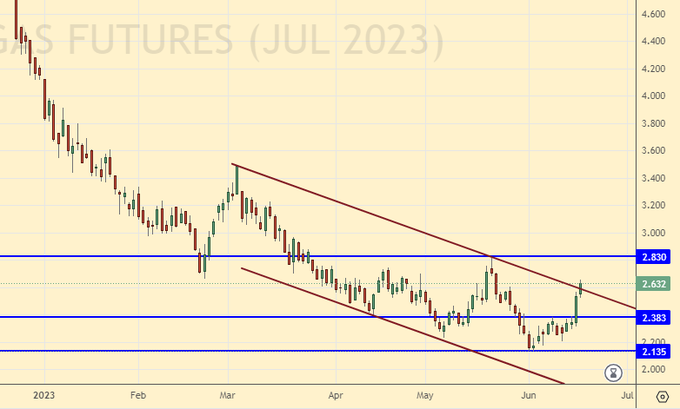 Growth scenario: we are considering the July futures, the expiration date is June 28. Following the European market, the American market also went up. We hold longs.