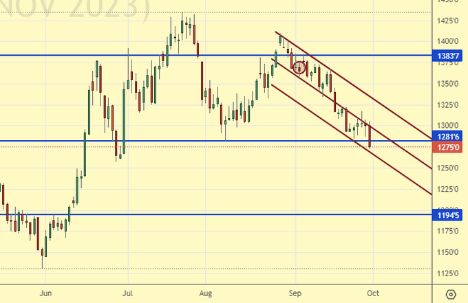 Growth scenario: we are considering November futures, expiration date October 20. Let’s refrain from shopping for now. Prices are high. Need a rollback.