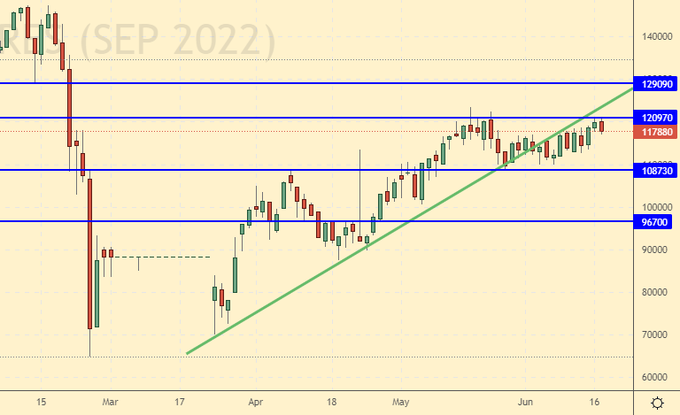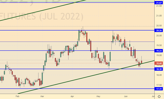 Growth scenario: we are considering the July futures, the expiration date is June 28. An understandable price drops. When approaching 5.500, you can think about shopping.