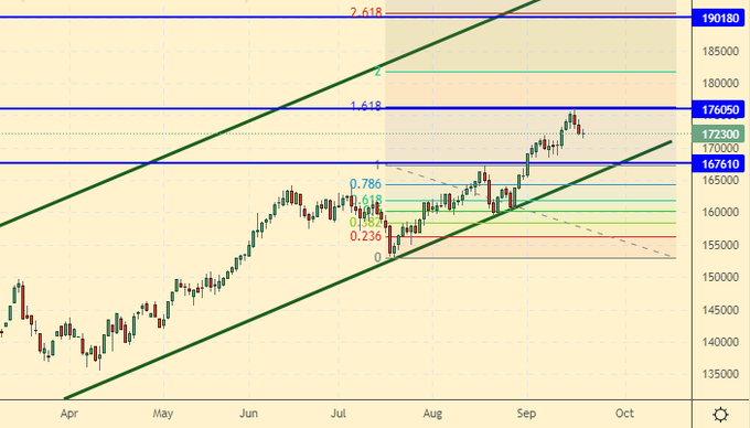 Falling scenario: possible short from current levels. In case of growth to 175,000, it is obligatory to sell. It is possible that a correctional move begins on the global market.