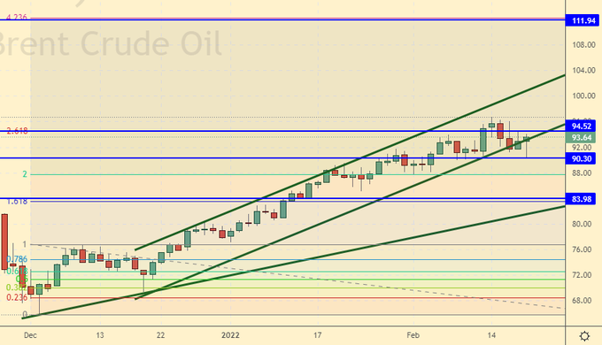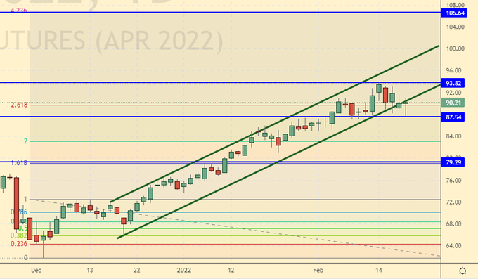 Growth scenario: April futures, the expiration date is March 22. You can try to go long after rising above 93.00. The chance of a move to 106.00 is not bad. Falling scenario: we don’t want to fall. Who entered the short after falling below 88.00, he stands, we do not open new positions down.