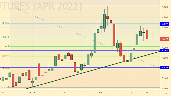 Growth scenario: April futures, the expiration date is March 29. We hold longs. The gas situation in Europe is tense.
