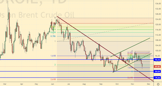 Growth scenario: we are considering the November futures, the expiration date is November 30th. The market failed to hold above the 90.00 level. We take a break, now we do not buy.