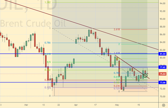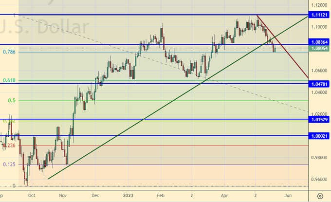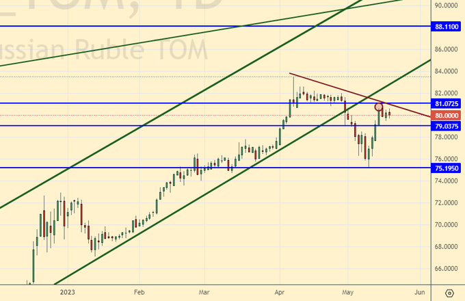 Speculation about raising the debt ceiling in the United States, which, if unsuccessful, could lead to a freeze in government agencies, does not subside. There is money until the end of May, and then we’ll see. It is unlikely that the current American elite is ready to destroy their own state. We are monitoring this situation. If they suddenly do not agree on raising the ceiling of the state debt, then the oil market may drop significantly at the moment.
