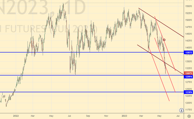 Growth scenario: we are considering the July futures, the expiration date is July 15. So far, we do not see a reversal up. Let’s take a break for a week. Let’s see how it ends.