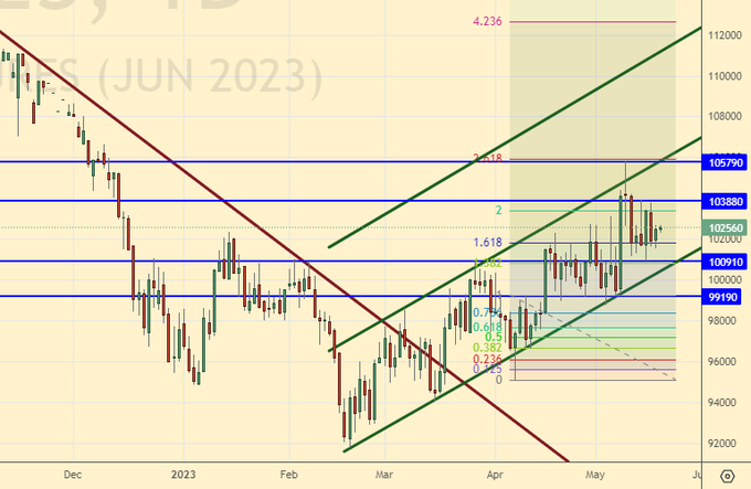 Growth scenario: we are considering the June futures, the expiration date is June 15. We will keep long at 112000, but we won’t be surprised if it all collapses. Right on Monday.