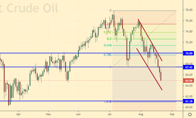 Growth scenario: October futures, expiration date September 21. The 58.50 area is interesting for shopping. We are waiting for a fall to this level and enter the market.