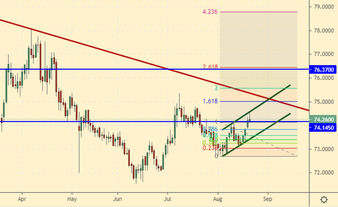 Purchase: no. Those who are in positions from 72.07 and 73.10, move the stop to 73.48. Target: 80.00. Sale: after falling below 73.90. Stop: 74.60. Target: 65.00!!!