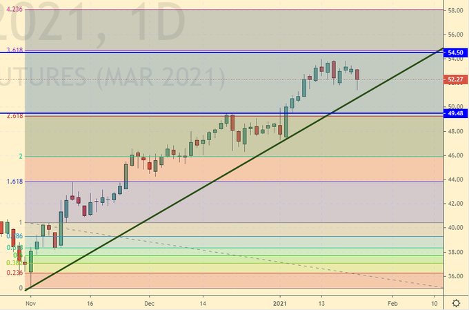 Growth scenario: March futures, expiration date February 22. New local minimum was shown on Friday. We pretend to break the long-term support line. We continue to count on a pullback to 46.00. Do not buy.