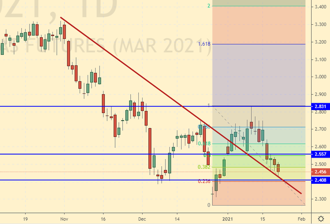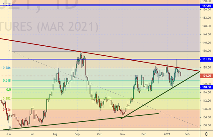 Growth scenario: March futures, expiration date February 24. Here you have to buy. Gazprom did not increase supplies to Europe so that the «partners» would take more from the storage facilities. This maneuver could lay the foundation for price increases.