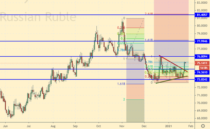 Two consecutive strong blows on the ruble on Thursday and Friday morning, immediately after Biden’s inauguration, are noteworthy. What it is? Collusion? Of course yes. After all, there are no statistics or news in the morning, there is nothing to react to. Everyone just got out of bed and put on soft slippers.