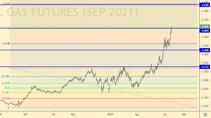 Growth scenario: September futures, expiration date August 27. We should get to 4.540 amid empty warehouses in Europe and strong demand. We keep longs.