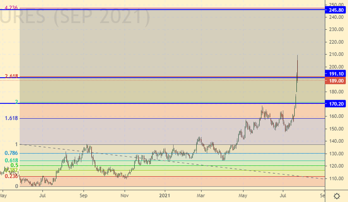 Growth scenario: August futures, the expiration date is August 12th. We see no reason for growth. The car season is coming to an end. Demand will inevitably fall. We do not buy.