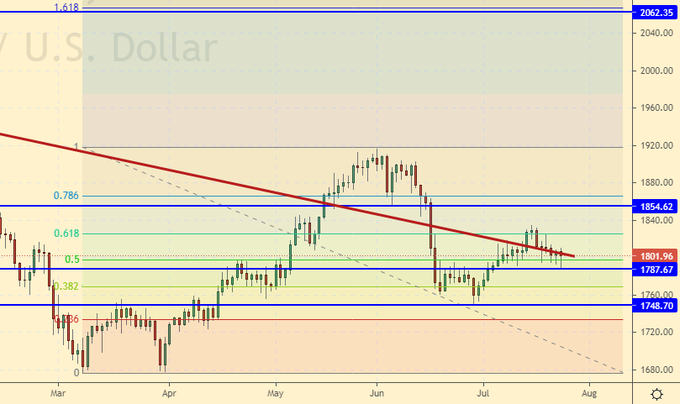 In the current situation, the move at 80.00 cannot be denied, but this rise will be an outright bluff against the backdrop of the OPEC + agreement reached and monstrous downpours around the world. If growth occurs, then it is worth increasing the rates on the market falling when reversal signals appear.