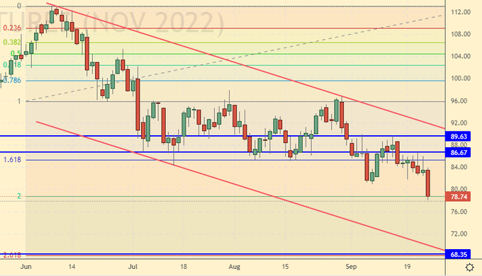 Lower gas station prices could help Biden and the Democrats at the moment. Against the backdrop of mobilization in Russia, the policies of the current White House administration have begun to raise questions among those Americans who simply want to live day after day and fall asleep in their bed at night. Since there are still a majority of calm and reasonable citizens there, the Republicans can regain control of Congress following the results of the elections. The organizers of the bearish pressure on quotes should not forget that the OPEC oil cartel has not gone anywhere. Sheikhs continue to closely monitor the balance of supply and demand. Prices below $80 per barrel will not suit them in this situation. We have the right to expect the organization to reduce production. The next meeting will take place on October 5th. By this date, the bears will probably be able to push Brent oil to the level of 78.00, but they will not be able to go below.