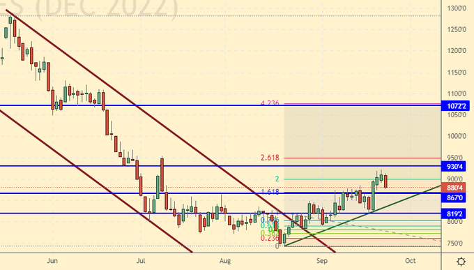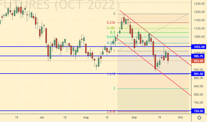 Growth scenario: consider the October futures, the expiration date is October 12. The market is likely to continue its decline against the backdrop of a recession in the US and Europe. Until we buy.