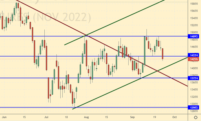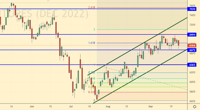 Growth scenario: switched to the November futures, the expiration date is October 27th. A total disappointment, not a bull market. From 6.592 a long suggests itself, but we will not recommend it.
