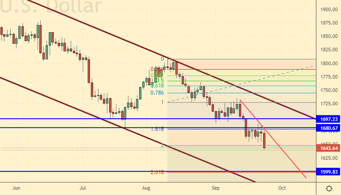 Growth scenario: we are considering the November futures, the expiration date is October 20. We will buy only when approaching 68.00. The market has every chance to continue falling.