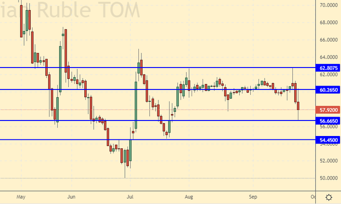 Fall scenario: entry into shorts is not recommended. There is no evidence, but there is a feeling that the couple is regulated. Most likely we will remain in the range of 55.00 — 60.00 rubles per dollar.