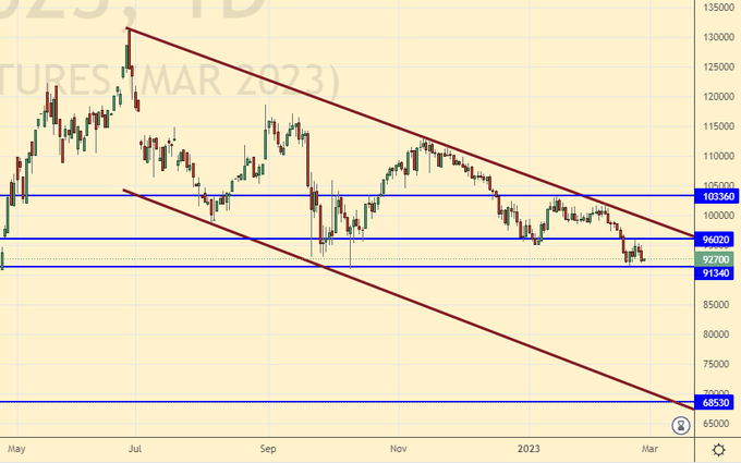 Growth scenario: consider the January futures, the expiration date is February 28. Current levels can be used for purchases. If prices fall below the level of 80.00, long positions will have to be left.