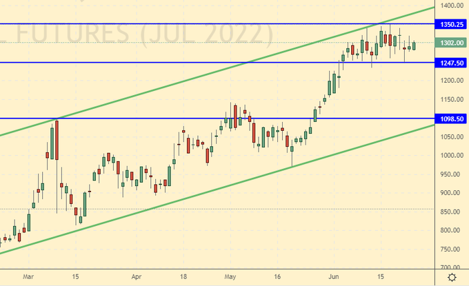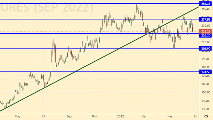 Growth scenario: we are considering the August futures, the expiration date is July 27. Prices returned to comfortable buying levels. You can buy.