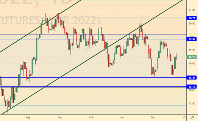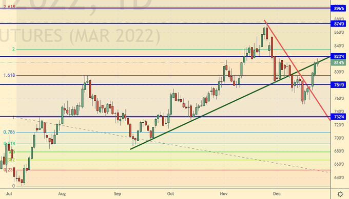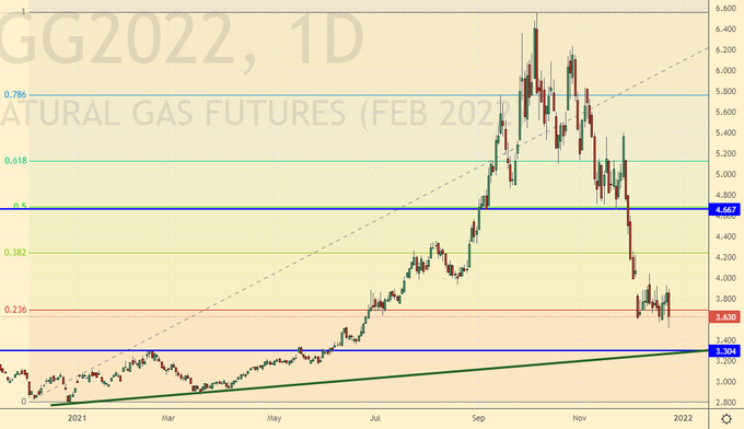 One cannot but mention the prices for natural gas in Europe. 800 million people have a great love for their politicians and economists, many of whom are Nobel Prize winners. And the peak of this love has not yet arrived. If the prices of 1000 dollars per 1000 cubic meters of gas will hold out in January and February, then in March, driven by spring hormones, the residents of Londons and Parises will start making fires in the buildings of local administrations. Anticipating such a thing, the nuclear power industry was quickly and quietly recognized in Europe as «green», let’s hope that this will help, and if not, then we are waiting for the actions of GAZPROM at the level of 480 rubles.