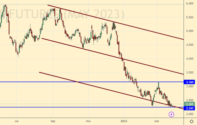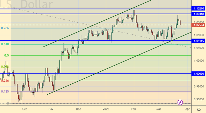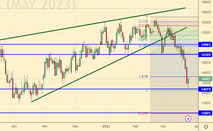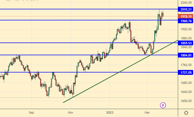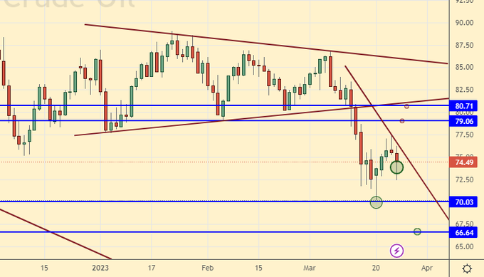 But the oil market shows that no one expects great demand for raw materials. If the madhouse with Western banks continues, it is unlikely to have a positive impact on the entire economy. The inability of oil to pass to the level of 100.0 tells us that the probability of a recession is very high.