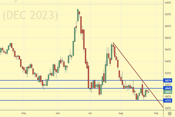 Sellers have very little time left to set a new low for wheat, it is necessary to go below 608 cents per bushel in December futures. If it doesn’t happen by September 10th, we probably won’t see it this year. After the first ten days of September, the bulls will return to the market.