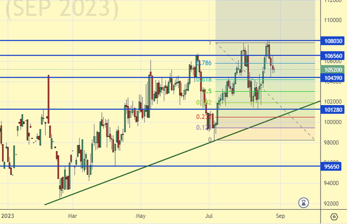 Fall scenario: we will keep shorts from 105800. It is worth recognizing that the situation is balanced. At the same time, the market can quickly swing in either direction.