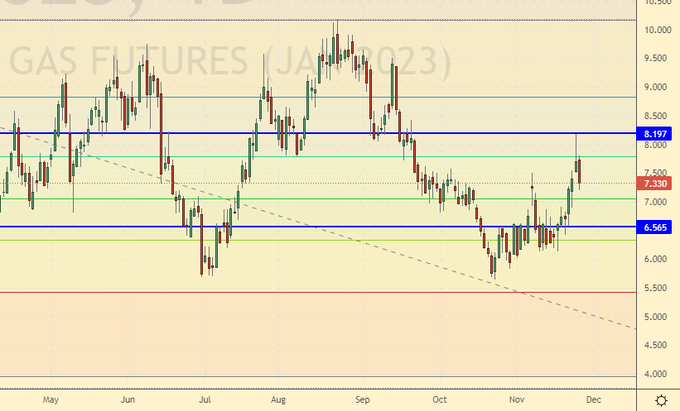 Growth scenario: consider the January futures, the expiration date is December 28. We stand in longs. Suddenly it will be very cold in the USA.