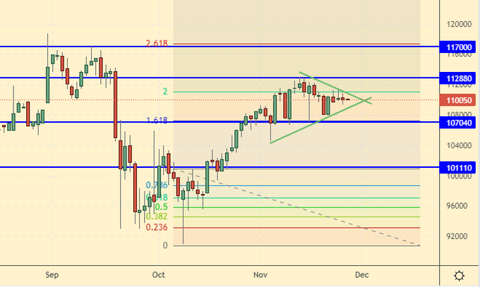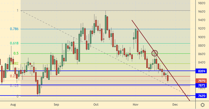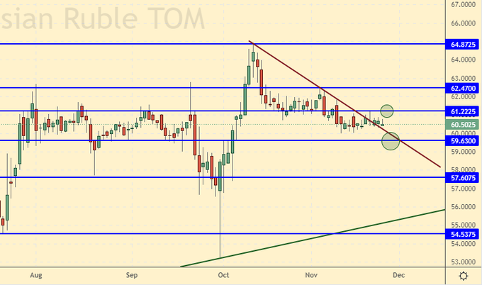 Fall scenario: it is worth holding short with a stop order at 61.20. No one expects a move at 50.00, which is why it can happen, will be a gift for Christmas.