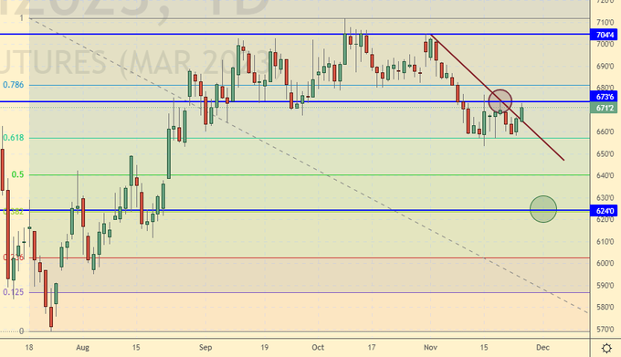 Growth scenario: consider the December futures, the expiration date is December 30th. We won’t be buying yet. Only when approaching 67.00 is it worth going long.