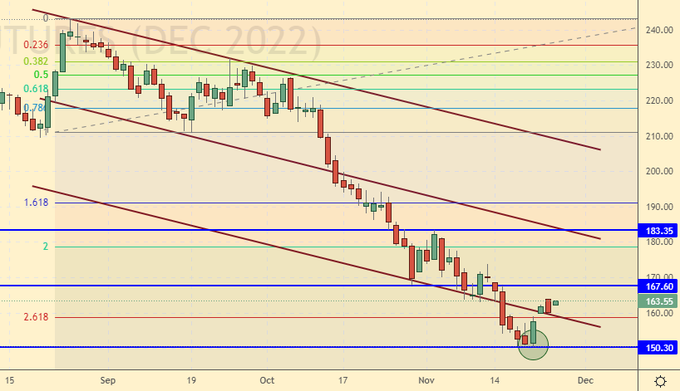 Purchase: no. Who is in positions from 160.0, 170.00 and 175.00, move the stop to 144.00. Target: 210.0 cents per pound.