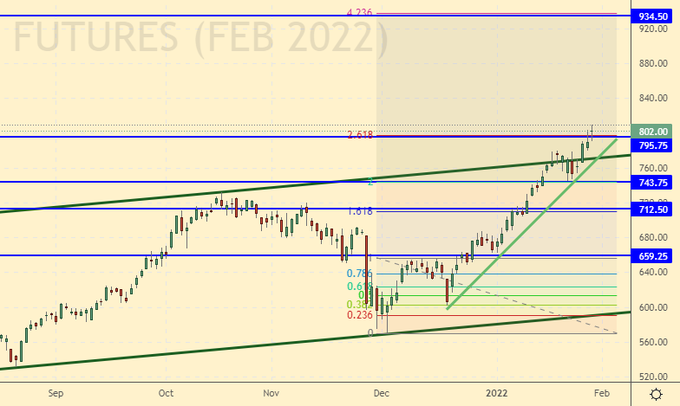 Growth scenario: March futures, the expiration date is February 22. Buying levels are too high. We need a rollback. Until we buy.