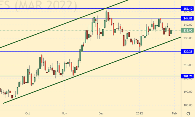 Falling scenario: response from Washington received. Not announced yet, but received. The main demands of Moscow were ignored by the West. The Kremlin must now somehow respond to this. Everyone is waiting. As for stocks, it is unlikely that there will be many willing to take at current levels. But in the future, Sberbank could attract fresh money to the market for 60 (sixty) rubles. Keep shorts.