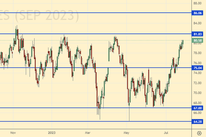 Oil has fixed above 80.00 and claims to go to 86.00. So far, KSA has managed to maintain prices by reducing production. The Kingdom voluntarily agreed to cut by 1 million barrels in July and extended it into August.
