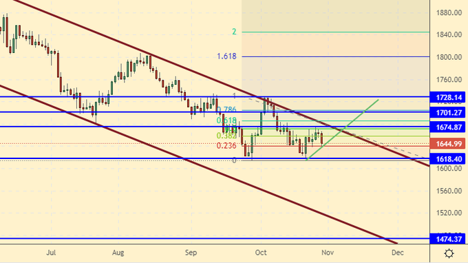 Growth scenario: consider the December futures, the expiration date is December 14th. Level 670.0 stands, which allows us to count on price growth. Here you can buy.