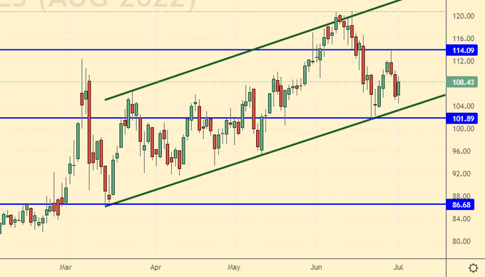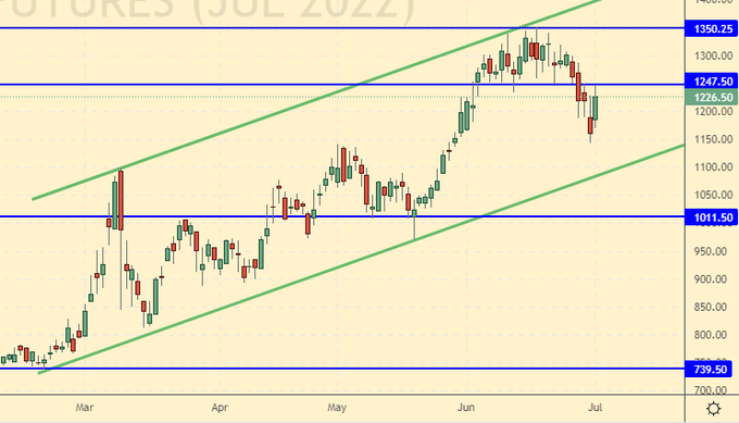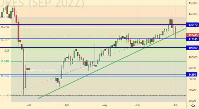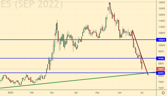 Growth scenario: we are considering the August futures, the expiration date is July 27. We recommend shopping. It is unlikely that prices will continue to fall in the current tense situation.
